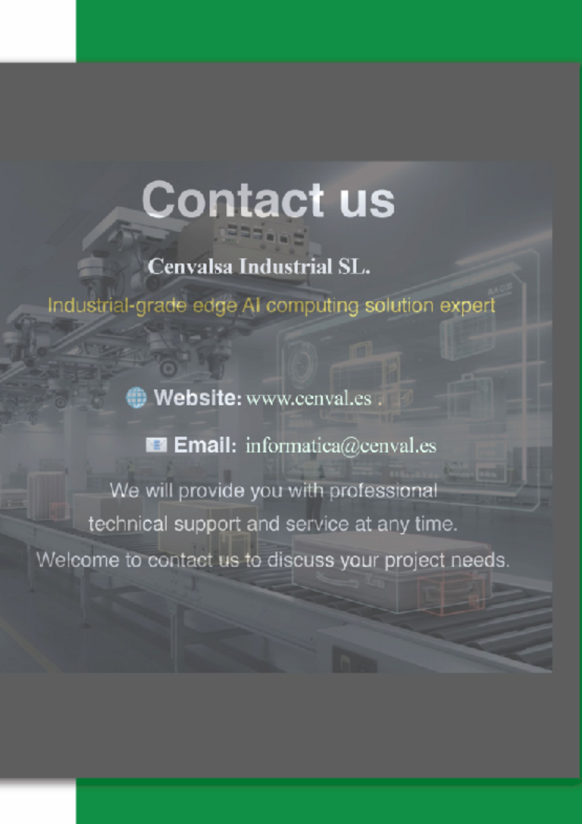 Por eso, en Cenvalsa Industrial acompañamos a integradores y fabricantes en la definición de sus arquitecturas de computación industrial. Podemos ayudarte a: